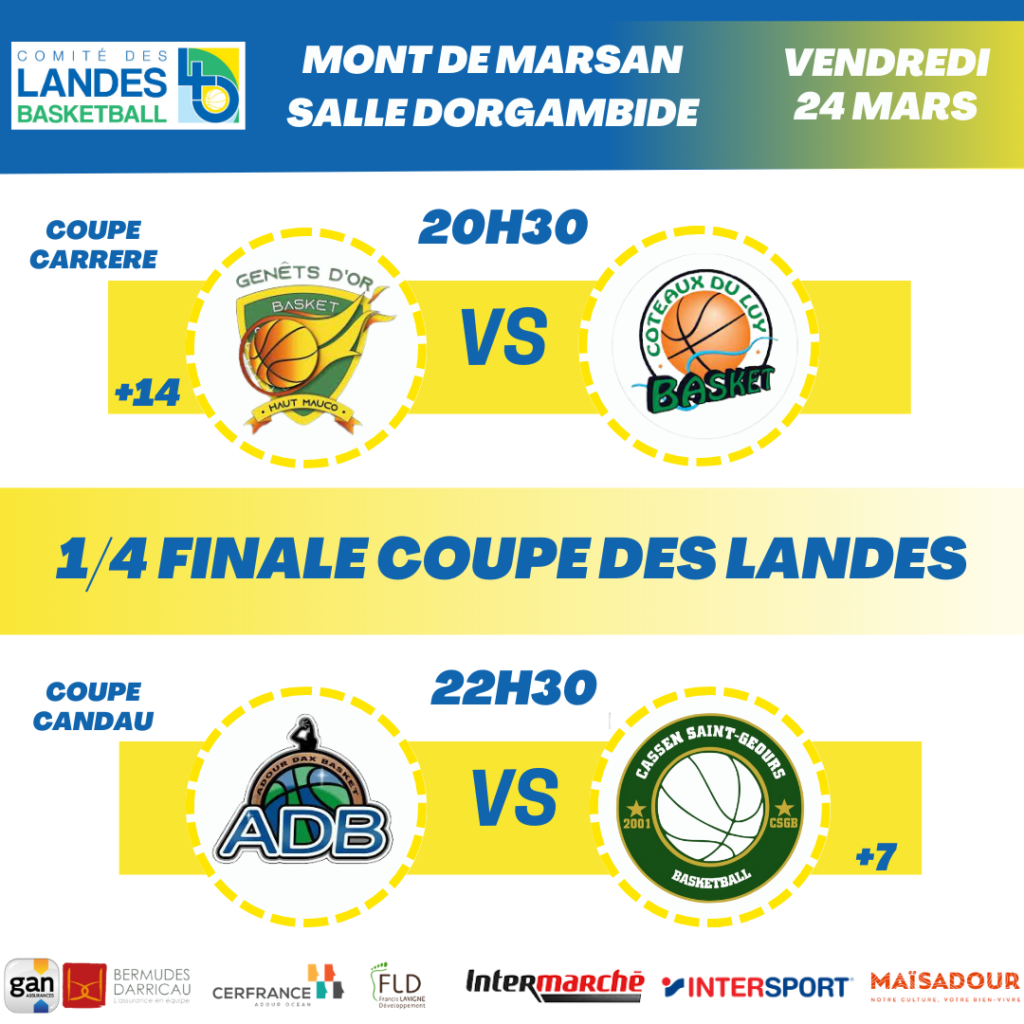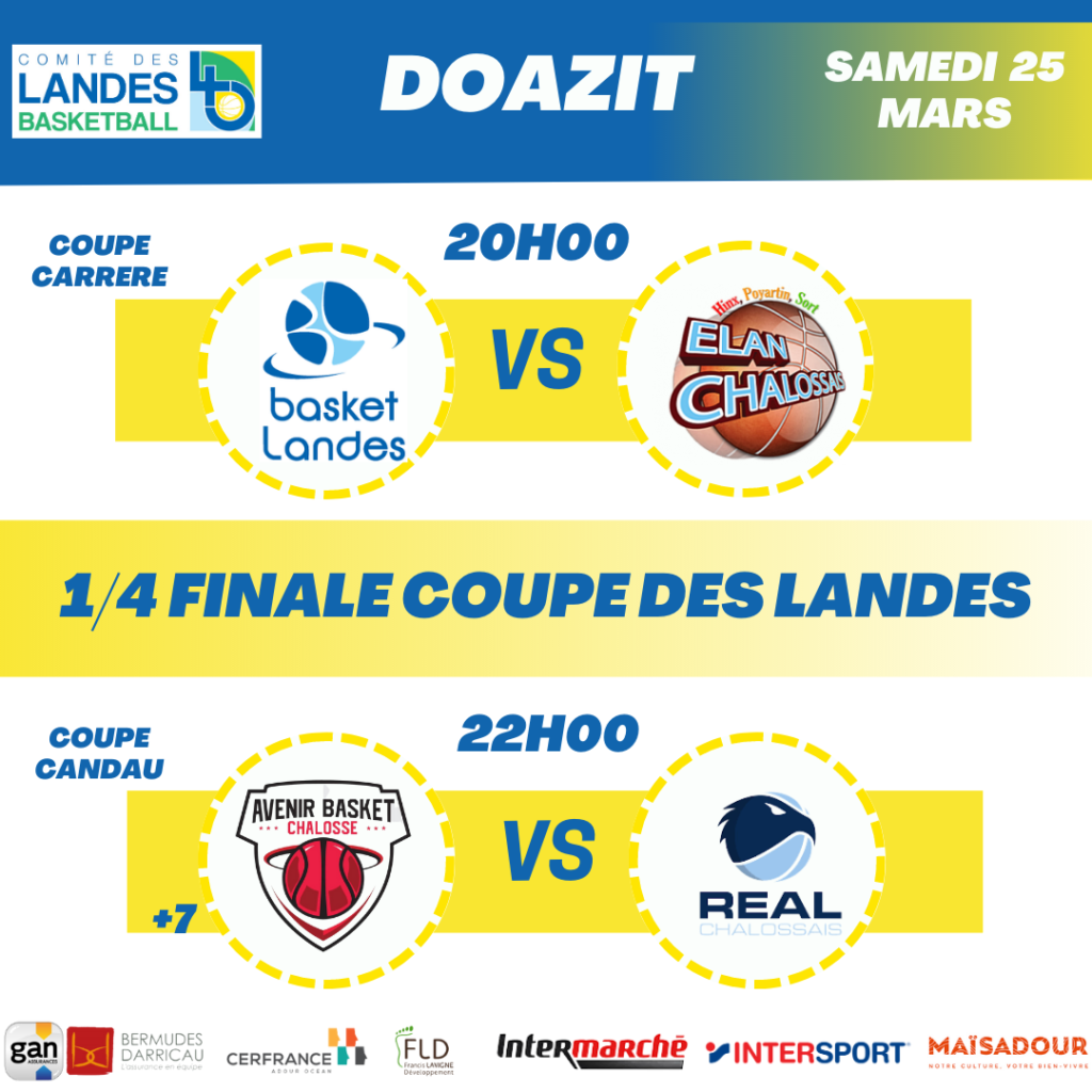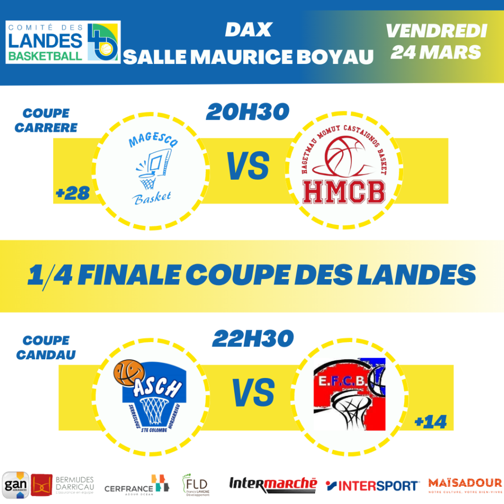 Rendez-vous en 1/2 et bon match à toutes les équipes encore en lice.