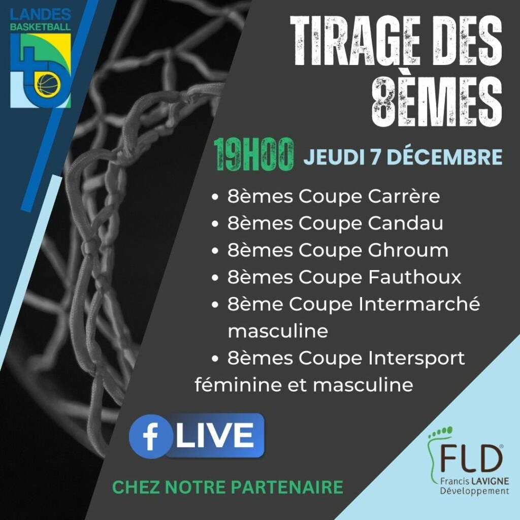 Rendez-vous JEUDI 7 DÉCEMBRE pour le tirage des 8èmes de finale des coupes suivantes :