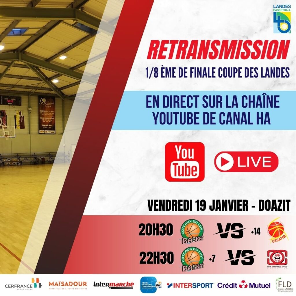 Les 2 rencontres (Coteaux du Luy vs Ussamb – Union Saint-Sever Audignon Montaut Basket // Coteaux du Luy vs @Dax Gamarde Basket 40 ) seront diffusées en direct sur la Chaine Youtube de Canal HA – Un grand merci à @CANAL HA pour cette diffusion! Le basket sur CANAL HA