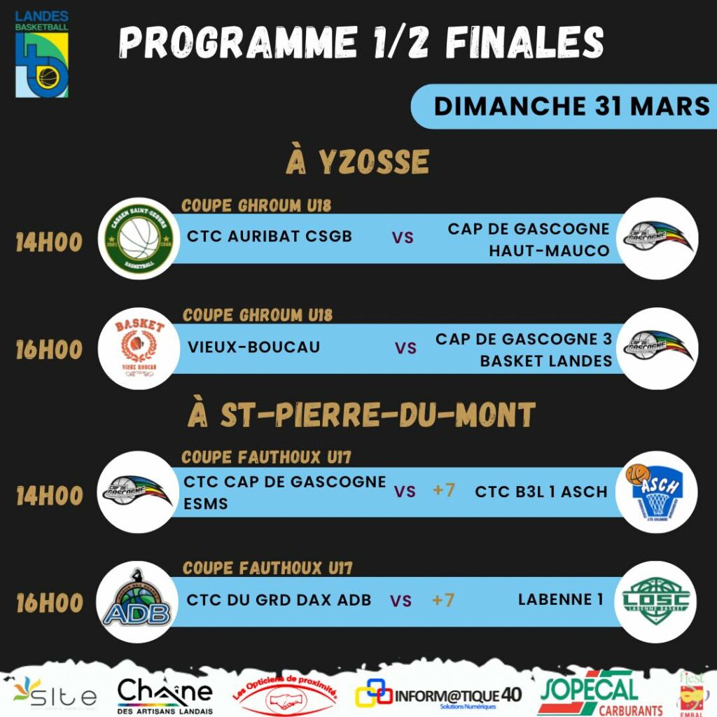 Voici le programme complet des 1/2 finales des Coupes Ghroum et Fauthoux !