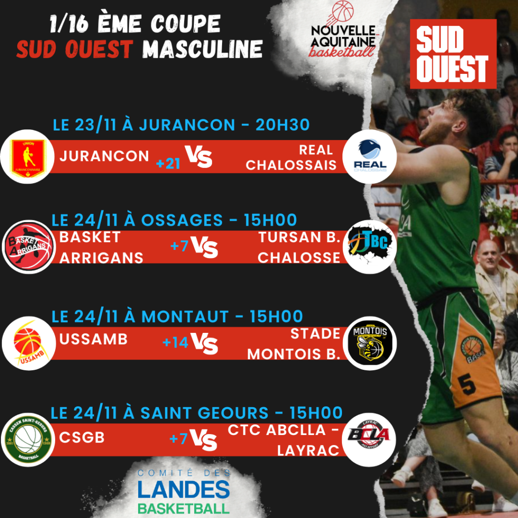 Place aux 16èmes de finales de la Super Coupe Sud-Ouest mais aussi la Coupe Nouvelle Aquitaine.