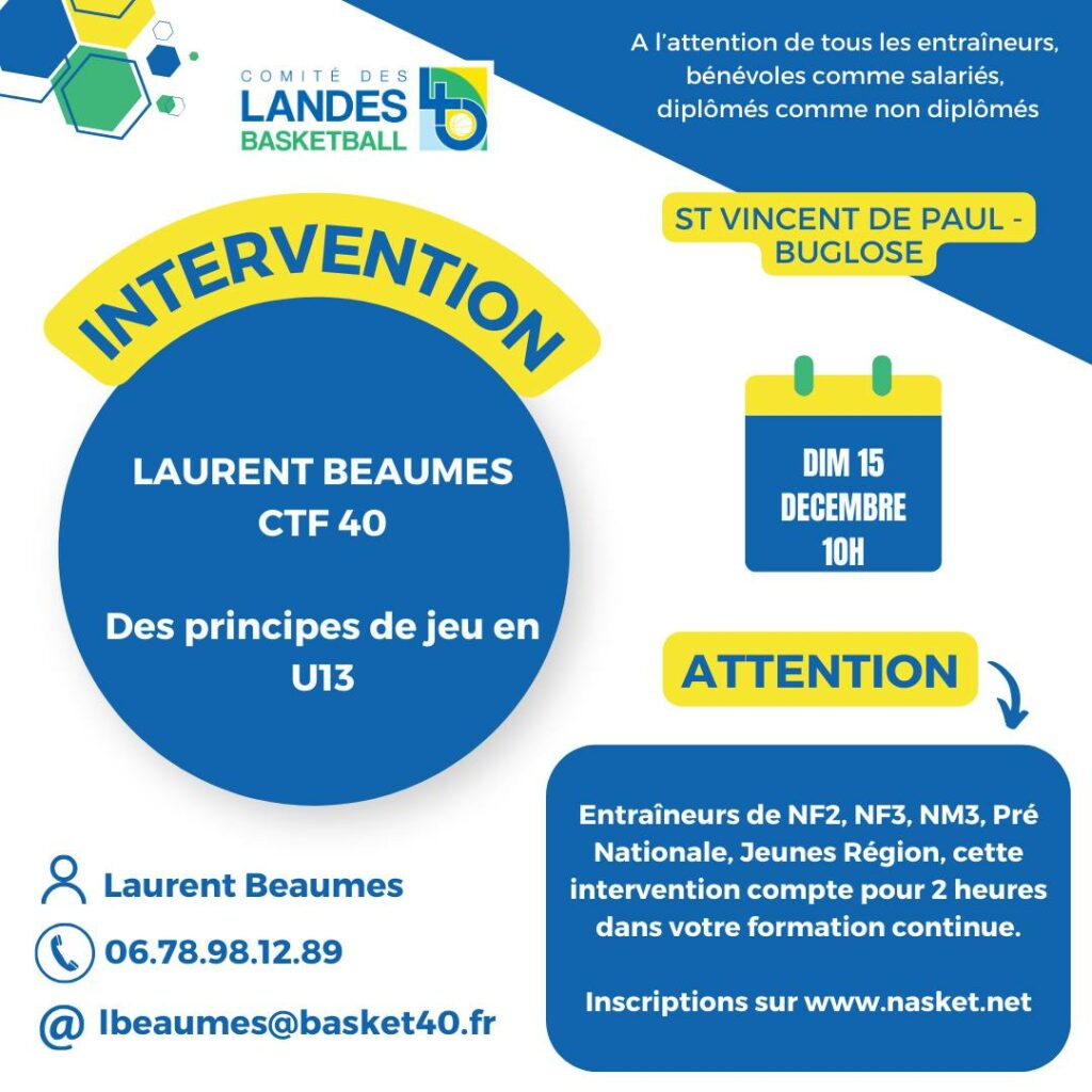 C’était ce DIMANCHE 15 DECEMBRE à Buglose qu’avait lieu la 2ème intervention technique en direction des entraineurs organisée par le COMITE DES LANDES. Laurent Beaumes intervenait sur le thème « des principes en […]