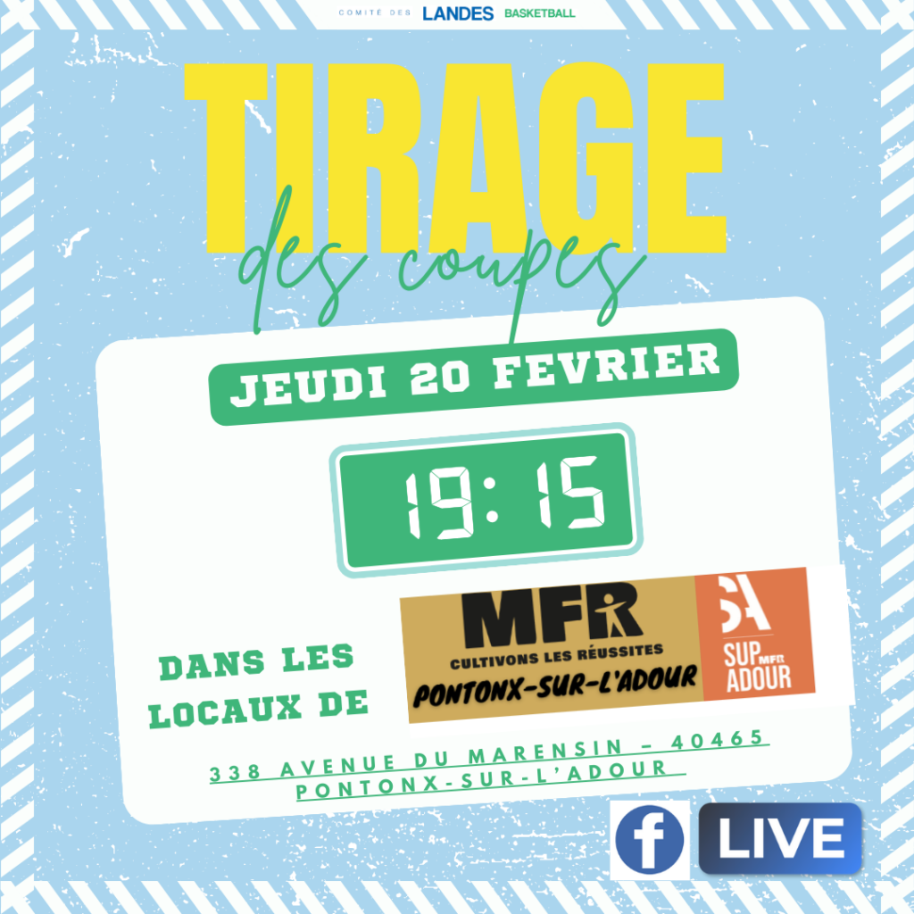 Pour rappel, les tirages des différentes coupes auront lieu ce JEUDI 20 FEVRIER à 19H15 dans les locaux de SUP’ADOUR – MFR DE PONTONX.