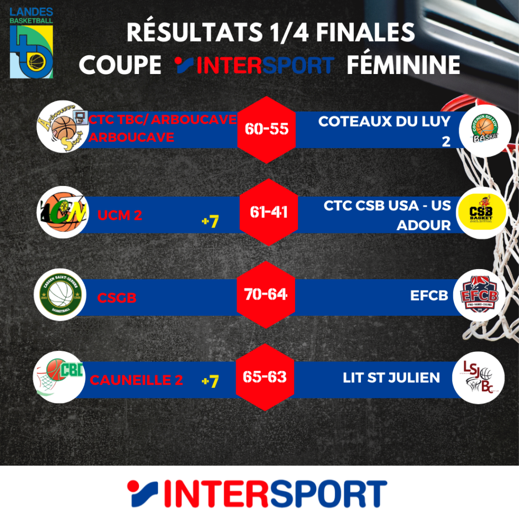 - CAUNEILLE 2 (+7) vs CTC TBC/ARBOUCAVE – ARBOUCAVE
