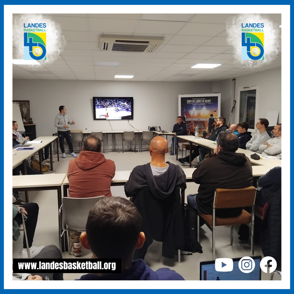 C’était ce Lundi 10 Novembre à la Maison du Basket Landais qu’avait lieu la 1ère intervention technique à des entraineurs organisée par le Comité des Landes.