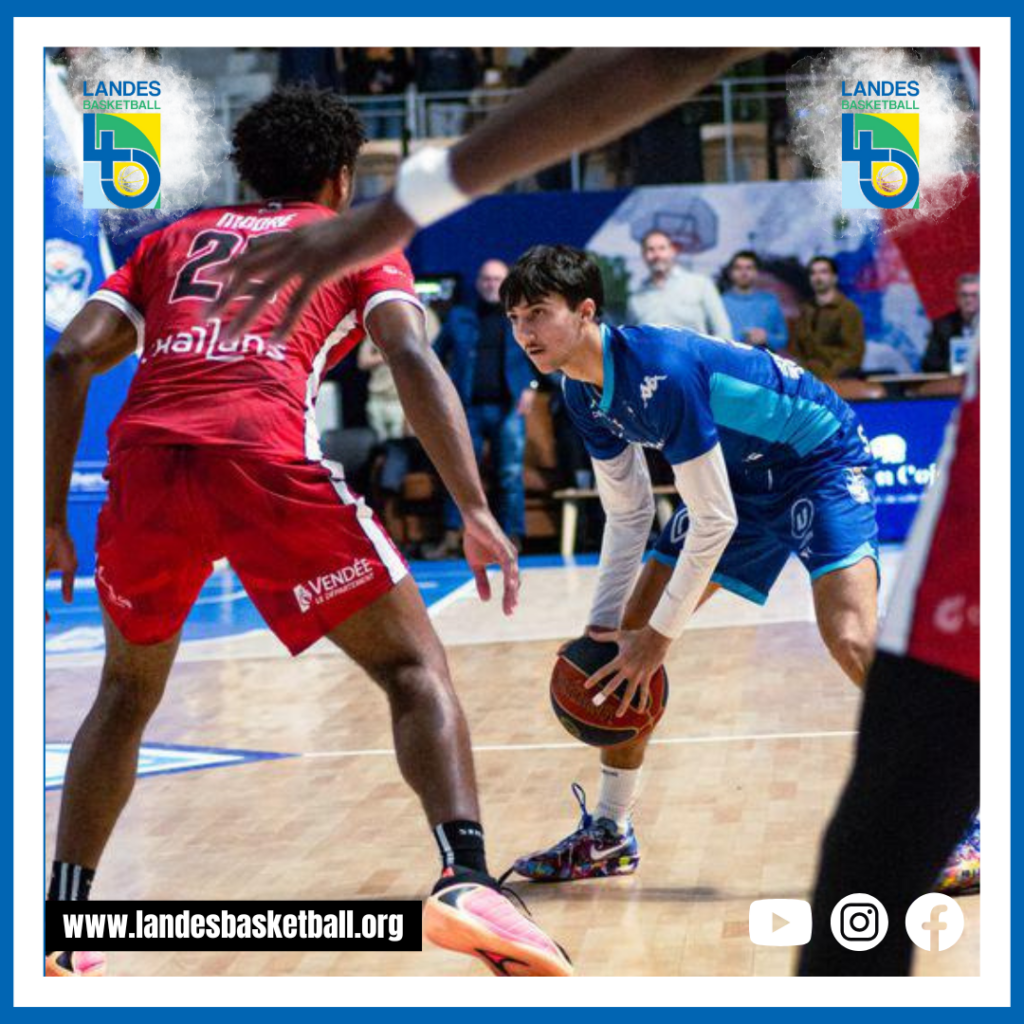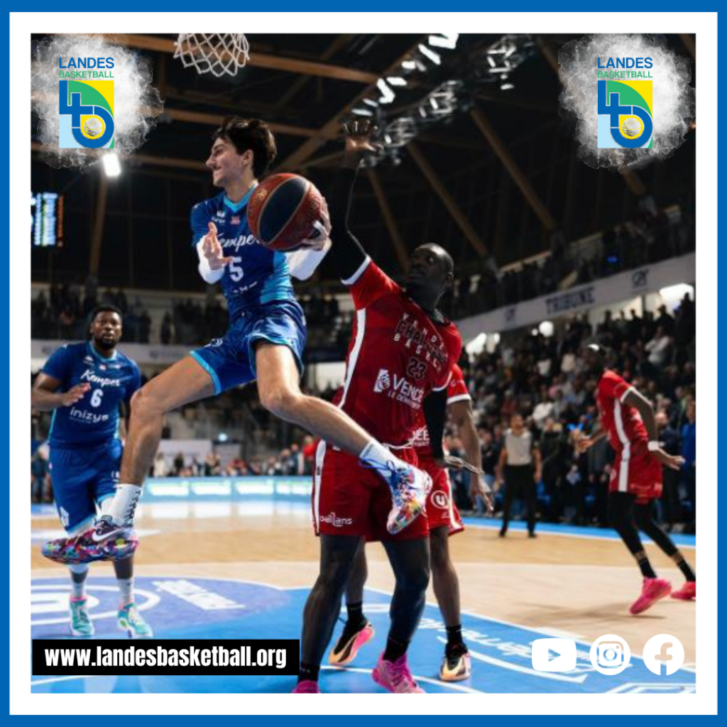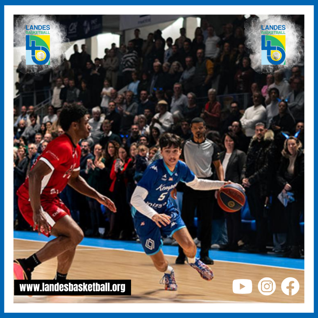 C’était Vendredi dernier à l’occasion de la 12ème journée du championnat d’ELITE 2. Sur le parquer de Quimper, le Landais YOHAN RENOU, 18 ans (Génération 2007 formé à Labenne et à l’Adour Dax Landes Basket) a disputé ses 1ères minutes en professionnel sous le maillot breton. Son équipe de Quimper l’a emporté 83-64 face à Challans.
