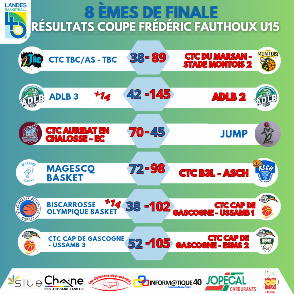 Félicitations aux équipes qualifiées et RDV les 14/15 mars 2026 pour les 1/4 de finales. Les tirages auront lieu au mois de Février.