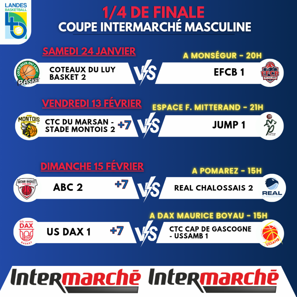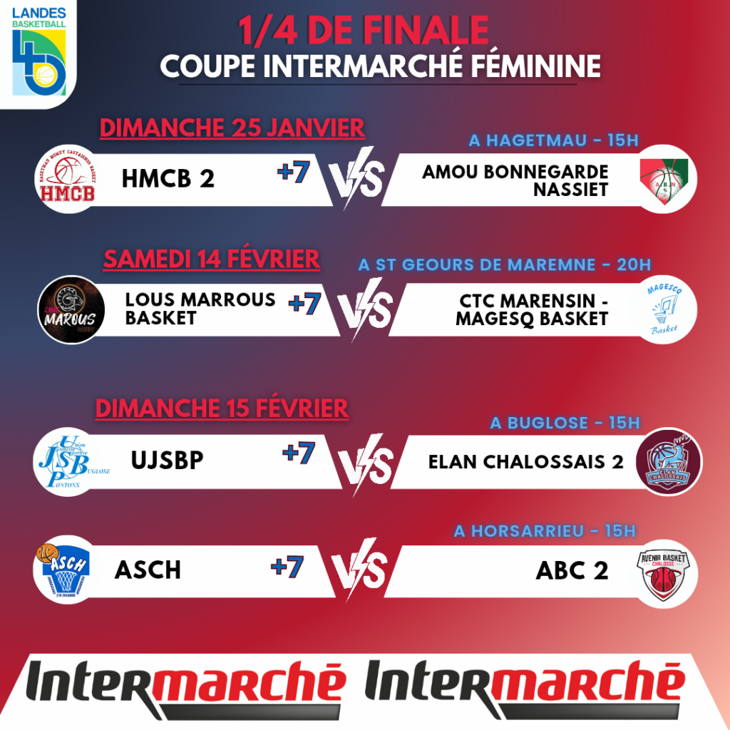 Retrouvez les derniers résultats des 1/8 èmes de finales Coupe Intermarché masculine disputés durant cette trêve !