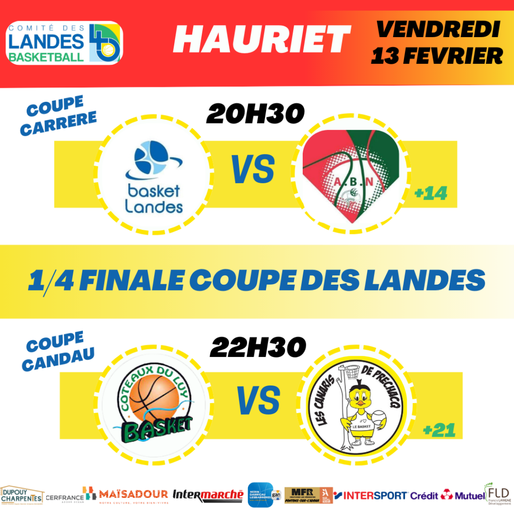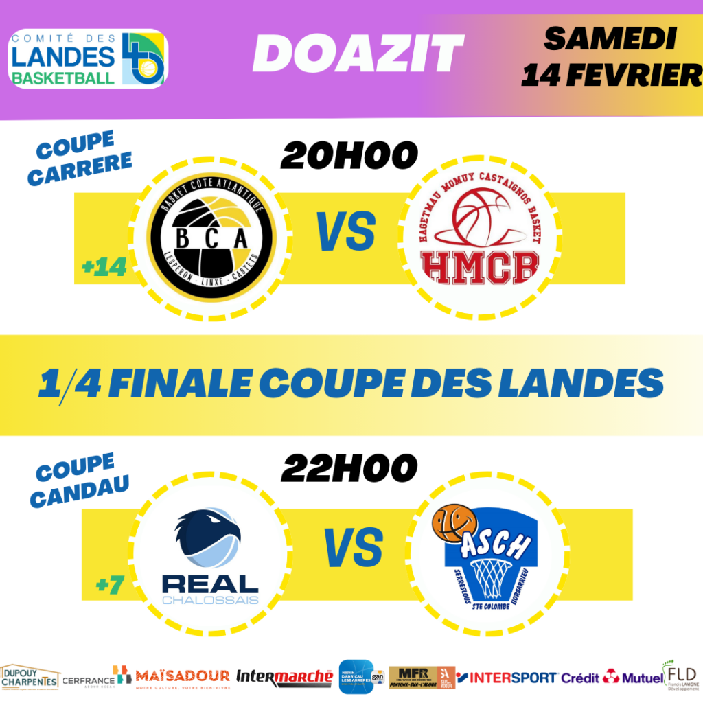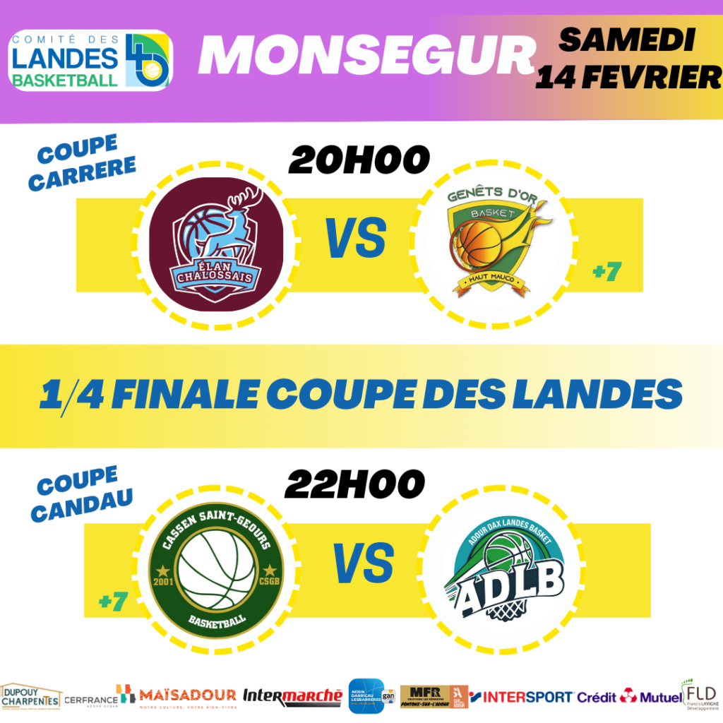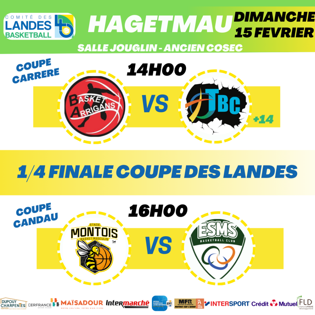 Ces affiches vous sont présentés par les partenaires de la Coupe des Landes : Crédit Mutuel / Maïsadour / Dupouy Charpentes / Cerfrance Adour Ocean / Intermarché / Gan Assurances / Cabinet Nerin Derricau Lesbarreres / Intersport Dax / Francis Lavigne Développement / MFR Pontonx / MDR sup’Adour